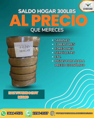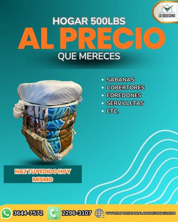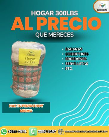 Sábana, cobertor, mantel, cortina, individuales, ponchos, edredones y mucho más. Puede contener algunas piezas con etiqueta o paquetes nuevos.