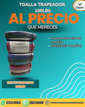 Contiene toallas para uso de trapeador tamaño pequeño, mediana y grande